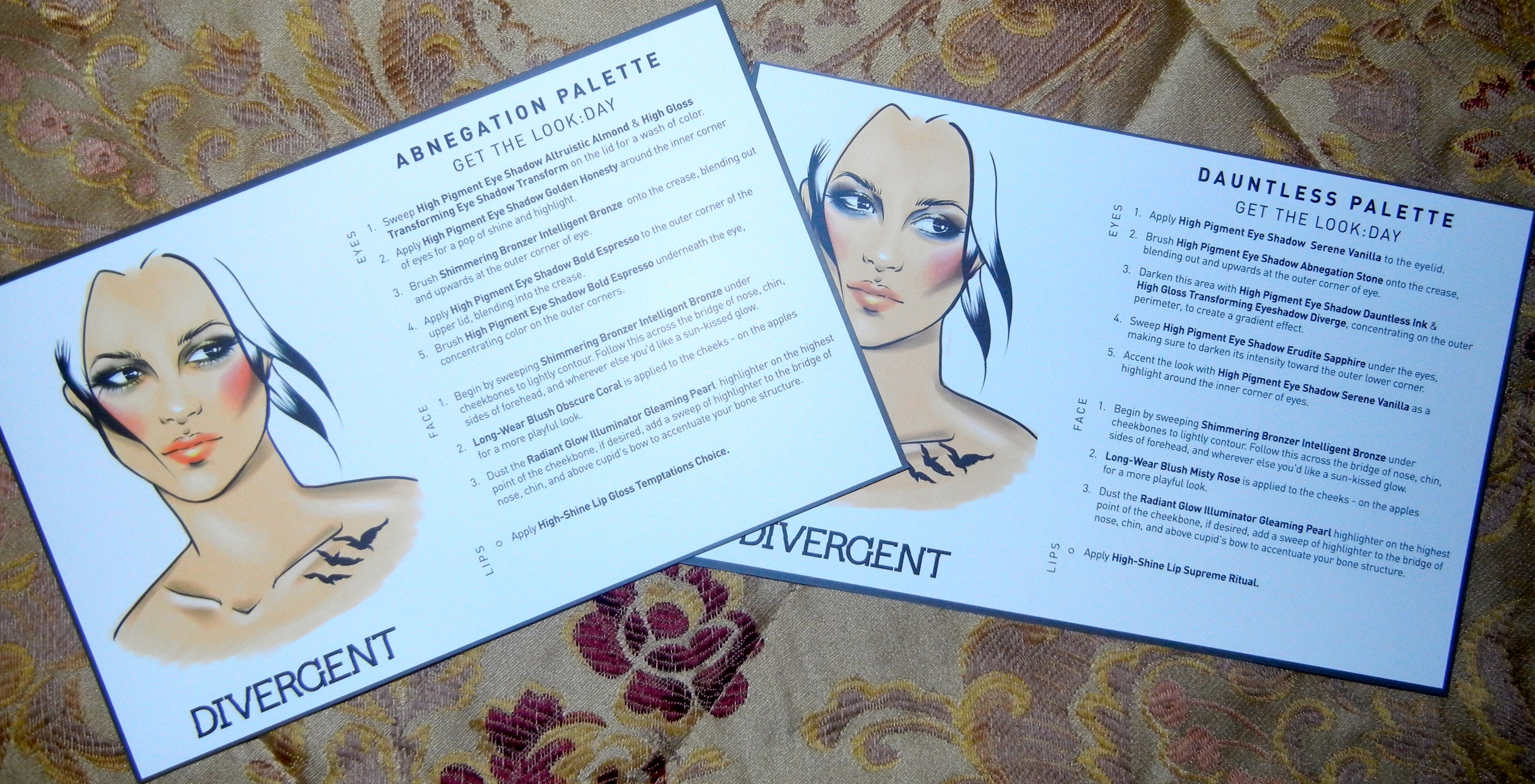 The kit comes with look books/ face charts for each palette and it has both a day and night look.